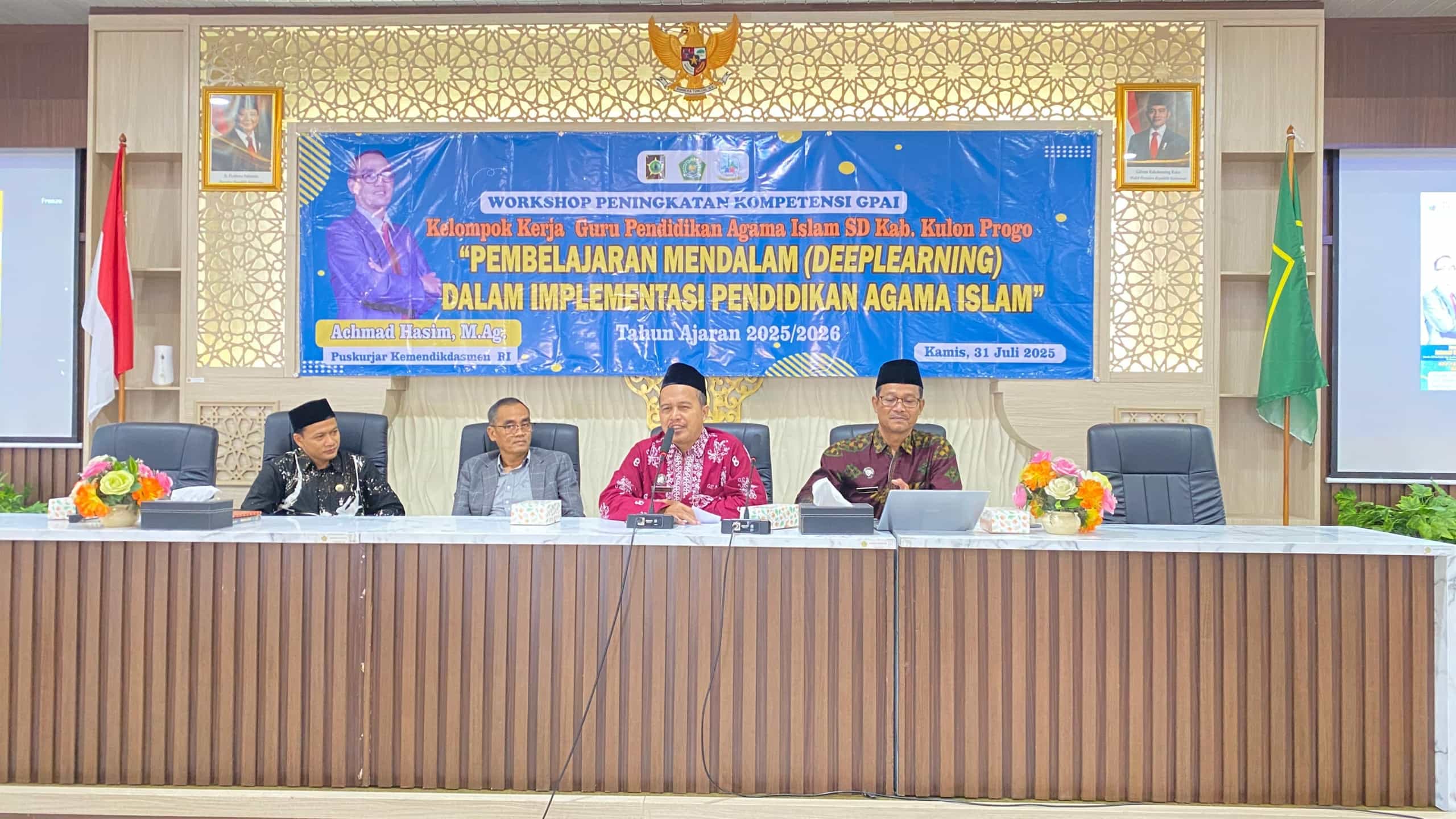 Kulon Progo (KKG PAI SD) – Kelompok Kerja Guru Pendidikan Agama Islam Sekolah Dasar (KKG PAI SD) Kabupaten Kulon Progo menggelar Workshop Peningkatan Kompetensi. Kegiatan tersebut mengambil tema Pembelajaran Mendalam (Deep Learning) dalam Implementasi Pendidikan Agama Islam. Agenda diselenggarakan di Aula Gedung PLHUT Kankemenag Kulon Progo pada Kamis (31/7/2025).