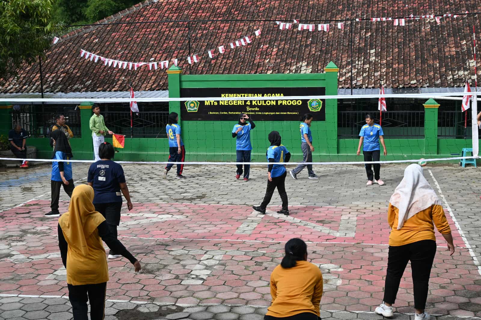 Kulon Progo (MTsN4KP) – Tim voli putra dan putri Kemenag Girimulyo, gabungan pegawai MTs N 4 Kulon Progo, MI, dan pegawai KUA berpartisipasi dalam lomba voli putri antar instansi yang diselenggarakan oleh Kapanewon Girimulyo (21-22/8/2025). Kegiatan tersebut dilaksanakan di GOR Tunas Menoreh untuk voli putra dan di lapangan voli MTsN 4 Kulon Progo bagi voli putri. Di bawah official R Fajar Ismayajati SPd dan Moh Aditia Nuraziz, tim berlaga sportif serta membawa hasil juara I untuk tim voli putri.