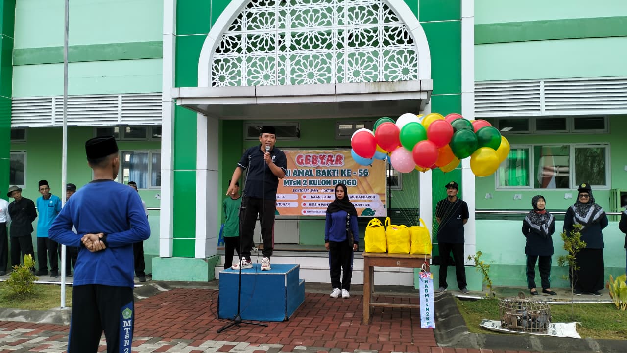 Kulon Progo (MTsN 2 KP) – Milad Ke 56 MTsN 2 Kulon Progo tahun ini dilaksanakan di halaman MTsN 2 Kulon Progo Unit 2 Palihan pada Kamis pagi (1 Oktober 1969-1 Oktober 2025). Peringatan milad kali ini mundur sehari dikarenakan pada tanggal 1 Oktober kemarin ada kegiatan PKM Tingkat Kabupaten Kulon Progo di MAN 2 Kulon Progo.