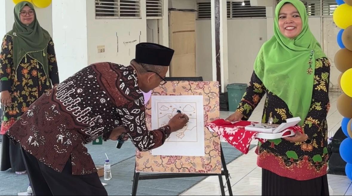 Sebagai tanda dimulainya kegiatan Pengawas Madrasah Kemenag Kulon Progo, H. Asrorudin, S.Pd., berkesempatan membubuhkan canting batik pada kain yang telah disiapkan. Tindakan simbolis ini menjadi bentuk peresmian sekaligus ajakan kepada seluruh peserta untuk menjaga dan melestarikan batik sebagai warisan budaya bangsa.