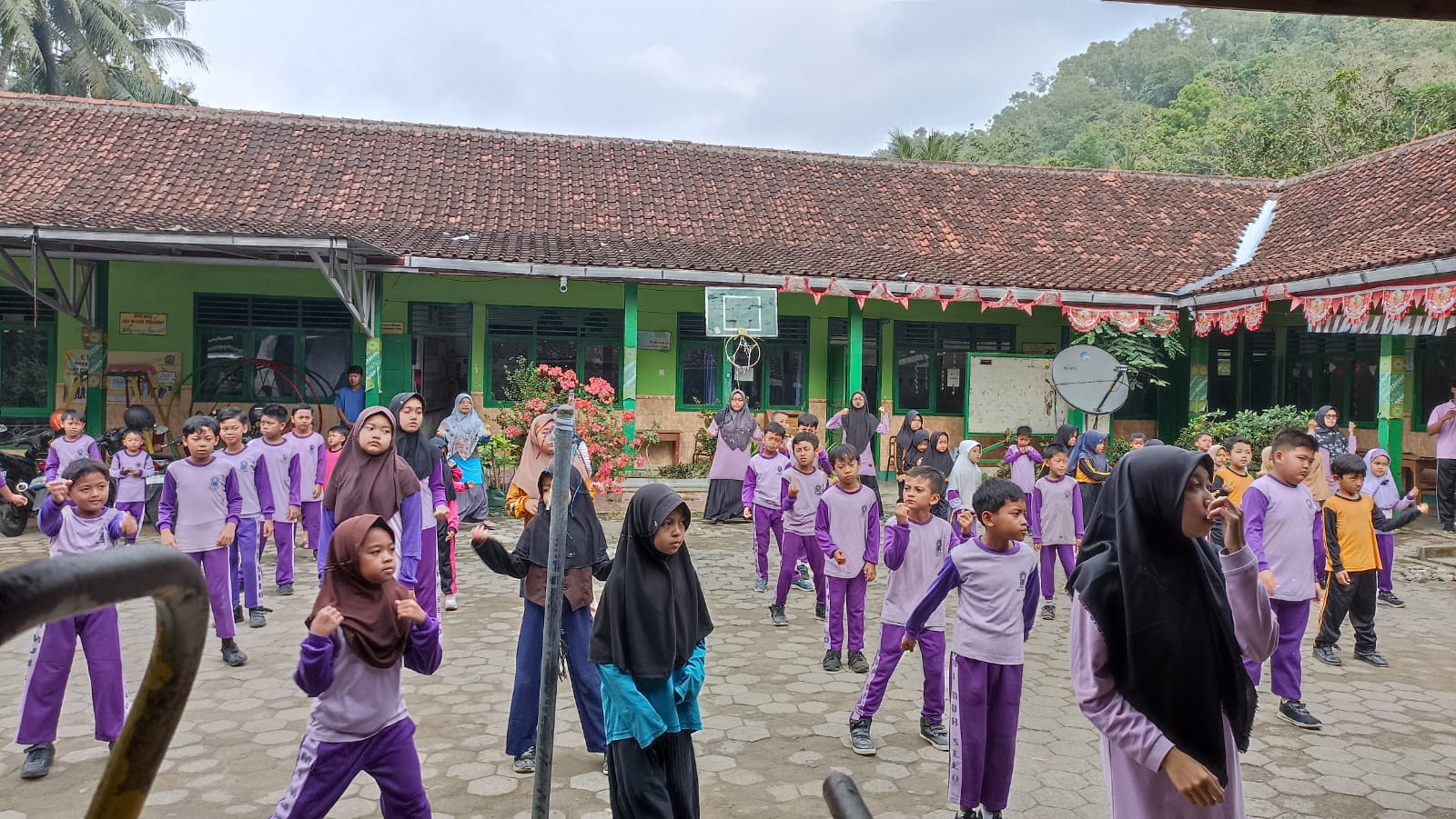 Instruktur Senam, Supriatun memimpin senam dengan penuh semangat. Siswa dan guru mengikuti setiap gerakan yang dicontohkan. “Ayo, anak-anak, tirukan gerakan saya,” tegasnya.