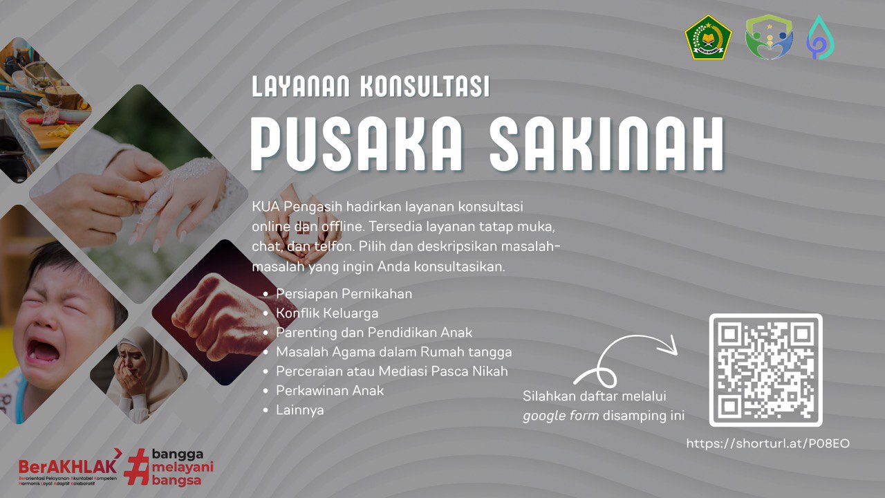 Selain bimbingan, KUA Pengasih juga memperkenalkan layanan terbaru berupa konsultasi Pusaka Sakinah. Layanan ini dapat diakses melalui Google Form dengan pilihan metode konsultasi beragam, mulai dari jawaban tertulis atas deskripsi masalah, chat atau voice note melalui WhatsApp, hingga penjadwalan tatap muka langsung di KUA. Adapun terkait dengan layanan Pusaka Sakinah dapat diakses melalui link: https://shorturl.at/P08EO