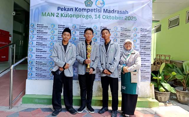 Kulon Progo (MAN 2 KP) – Tim Musabaqah Fahmil Qur’an (MFQ) Putra MAN 2 Kulon Progo yang terdiri atas Jalaludin Al Karimi, Faruq Adnan Khairul Annam, dan Muhammad Haidar Daffa’as-Sabiq, berhasil meraih Juara 2 pada ajang Pekan Kompetisi Madrasah (PKM) Tingkat Daerah Istimewa Yogyakarta Tahun 2025.