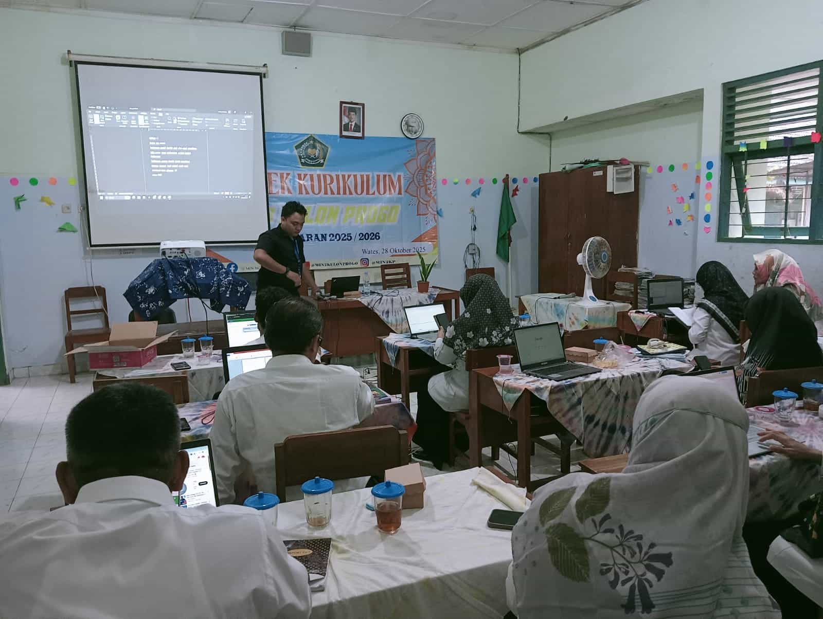 Kegiatan ini diikuti oleh guru dan pegawai MIN 2 Kulon Progo, yang berjumlah 19 orang. Bimtek dengan menghadirkan narasumber, Umar Mukas Pratama dari JMD Yogyakarta. Hal ini disampaikan guru MIN 2 Kulon Progo, Yuli Supriyanto, S.Psi, di sela-sela kegiatan JMD di ruang kelas setempat, Selasa (28/10/2025) siang.
