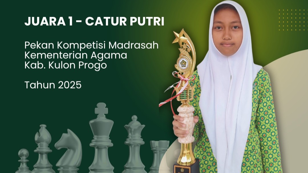 Kulon Progo (MTsN5KP) – MTs Negeri 5 Kulon Progo kembali menorehkan prestasi membanggakan dalam ajang Pekan Kompetisi Madrasah (PKM) Kementerian Agama Kabupaten Kulon Progo. Pada cabang catur putri yang dilaksanakan di MAN 1 Kulon Progo, Selasa (30/09/2025) pagi, salah satu siswinya, Dhini Aulia Ramadhani, berhasil meraih gelar juara 1 setelah unggul dari 12 peserta lainnya.