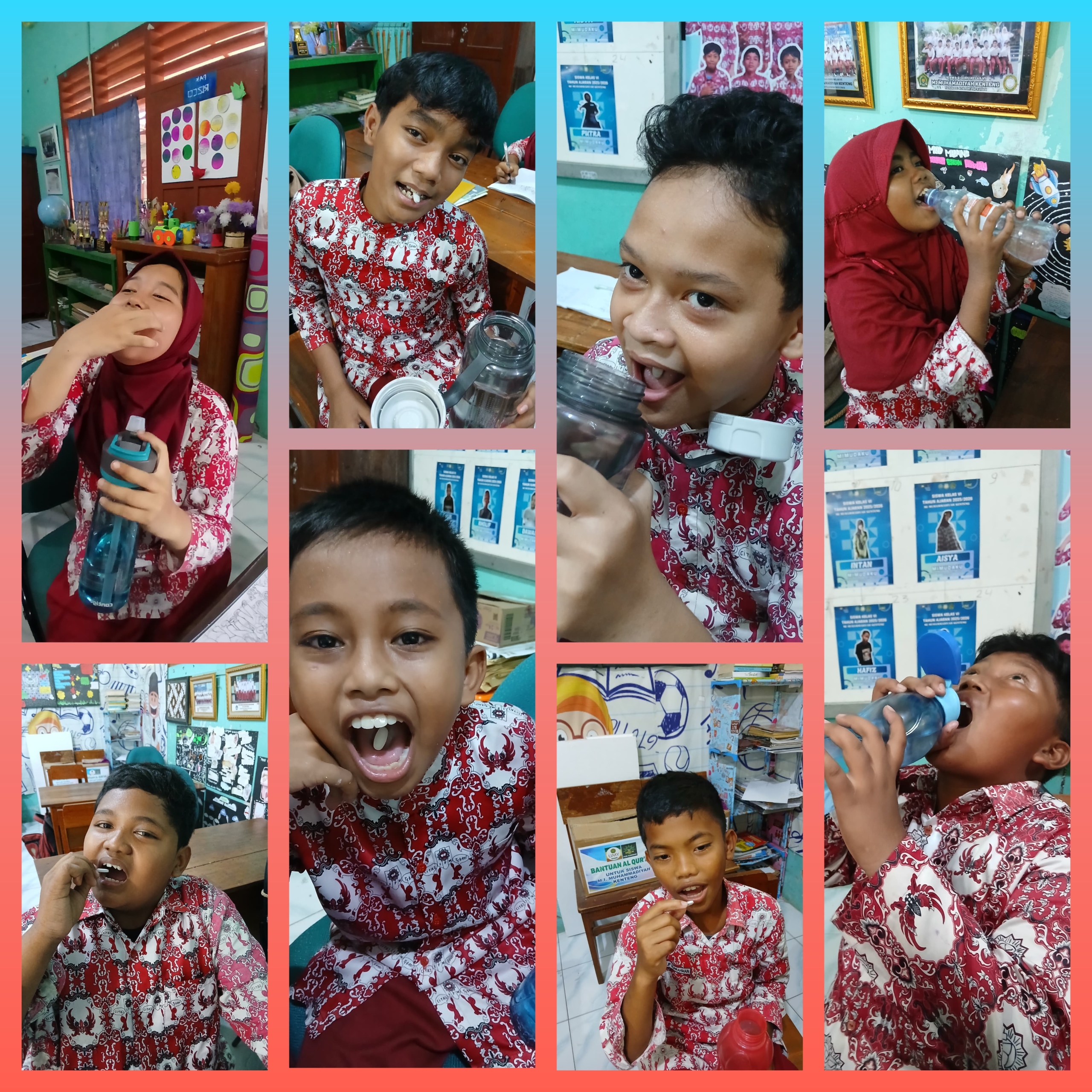 Upayakan Kesehatan, Siswa MIM Kenteng Minum Obat Cacing Bersama