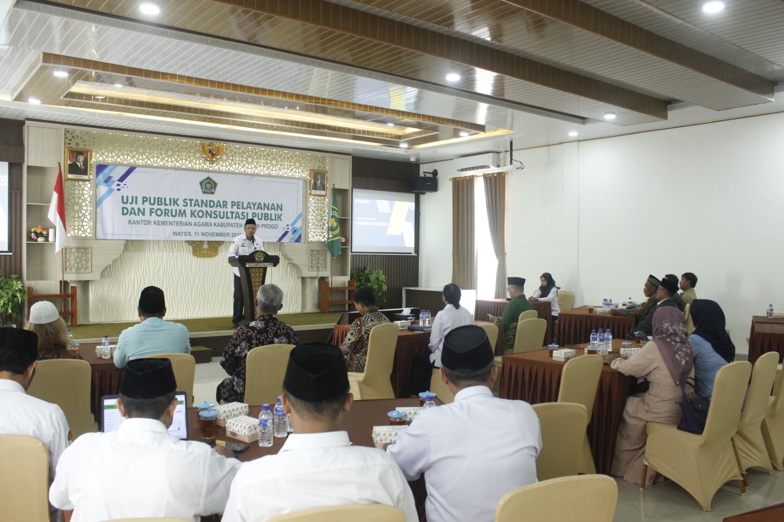 Kulon Progo (KemenagKP) – Kantor Kementerian Agama (Kemenag) Kulon Progo menggelar uji publik standar pelayanan dan forum konsultasi publik tahun 2025 di Pusat Layanan Haji dan Umroh Terpadu (PHLUT), Selasa (11/11/2025). Kegiatan ini bertujuan untuk mempertahankan predikat Zona Integritas Wilayah Bebas dari Korupsi (ZI WBK) dan meningkatkan kualitas pelayanan publik.