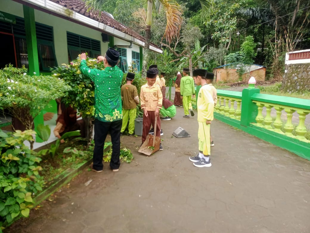 Semua siswa melaksanakan kerja bakti dengan semangat beserta guru bersama-sama membersihkan lingkungan madrasah. (dyh/abi).