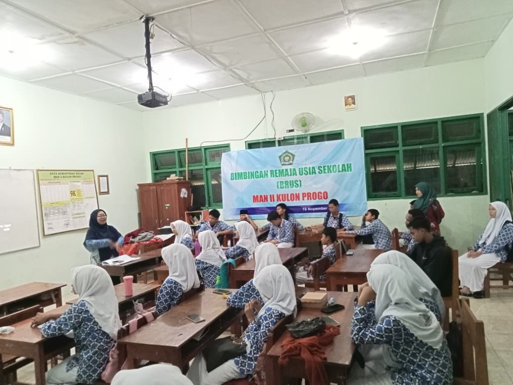 Kulon Progo (KUA Galur) – Penyuluh Agama Islam KUA Galur kembali berperan aktif dalam pembinaan remaja di lingkungan sekolah. Pada Kamis (20/11/2025), Penyuluh Agama KUA Galur Isnaini Mar’ah Azizah, S.Fil.I., M.S.I hadir sebagai fasilitator dalam kegiatan Bimbingan Remaja Usia Sekolah (BRUS) di MAN 2 Kulon Progo.