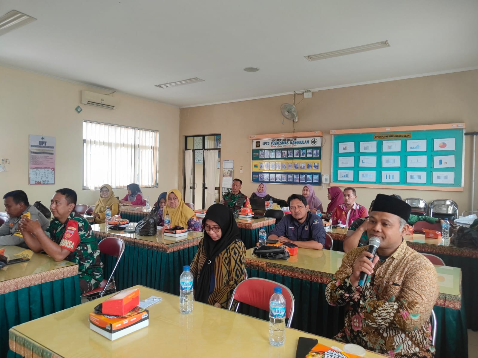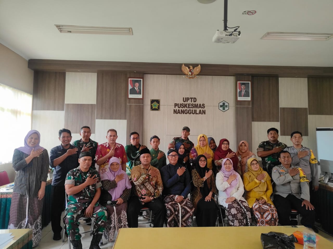 Kegiatan yang berlangsung di Aula Puskesmas ini dihadiri oleh jajaran Forkompimcam Nanggulan—Panewu, Polsek, Koramil, perwakilan kalurahan—serta Kepala KUA Nanggulan, Jemino, S.H.I., M.H.