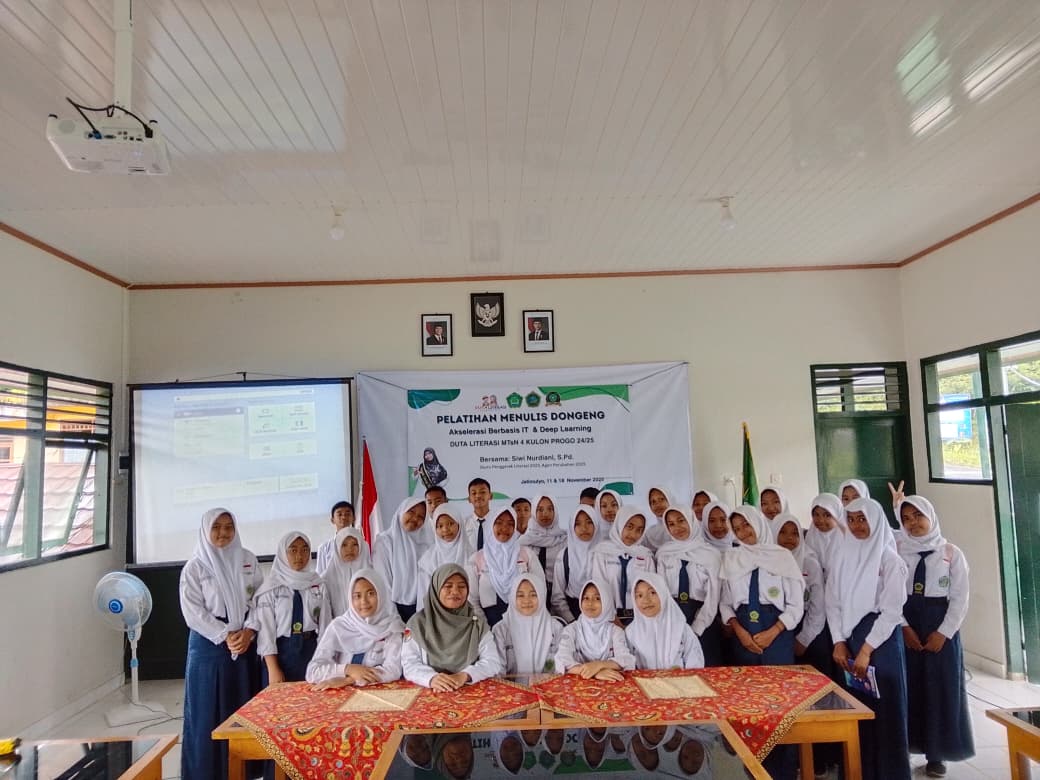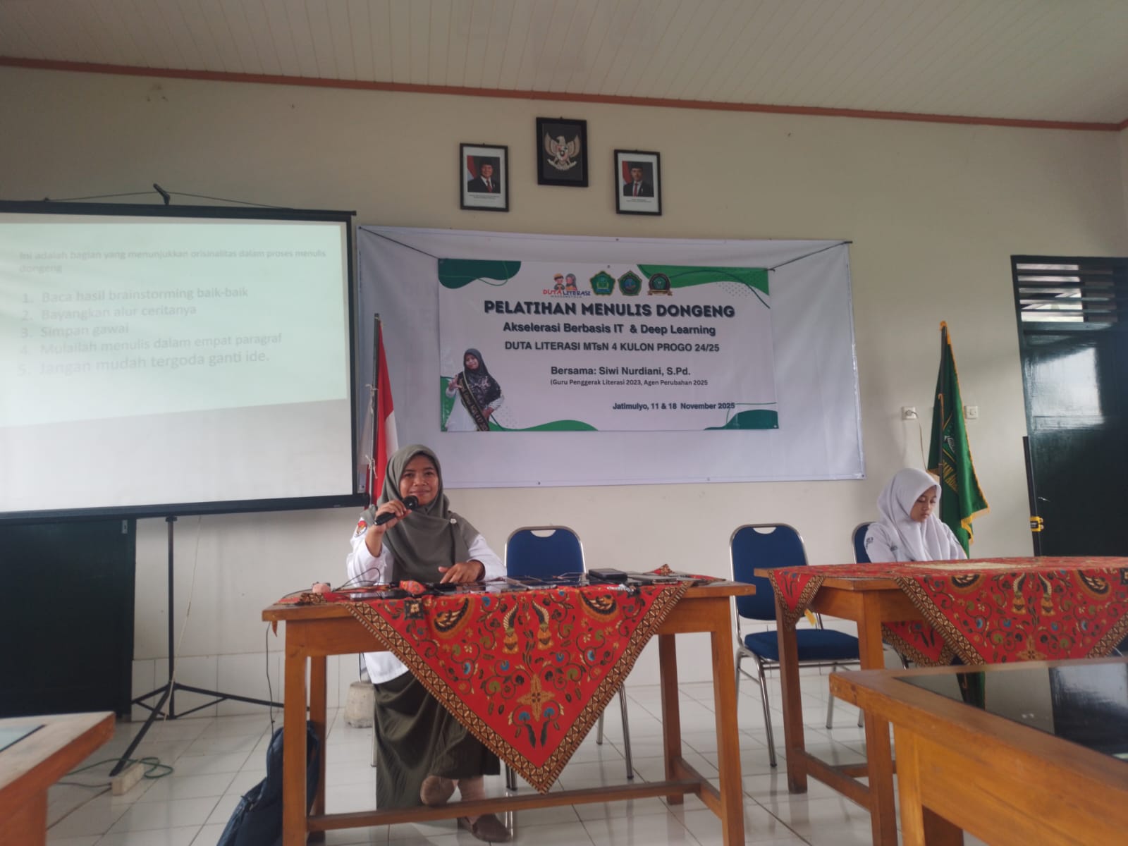Kulon Progo (MTsN4KP) — Komunitas Duta Literasi MTsN 4 Kulon Progo menyelenggarakan program Pelatihan Menulis Dongeng pada Selasa (11/11/2025). Agenda tersebut dengan tujuan menciptakan generasi yang gemar berkarya,