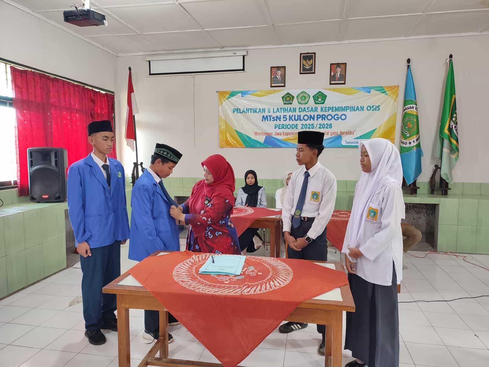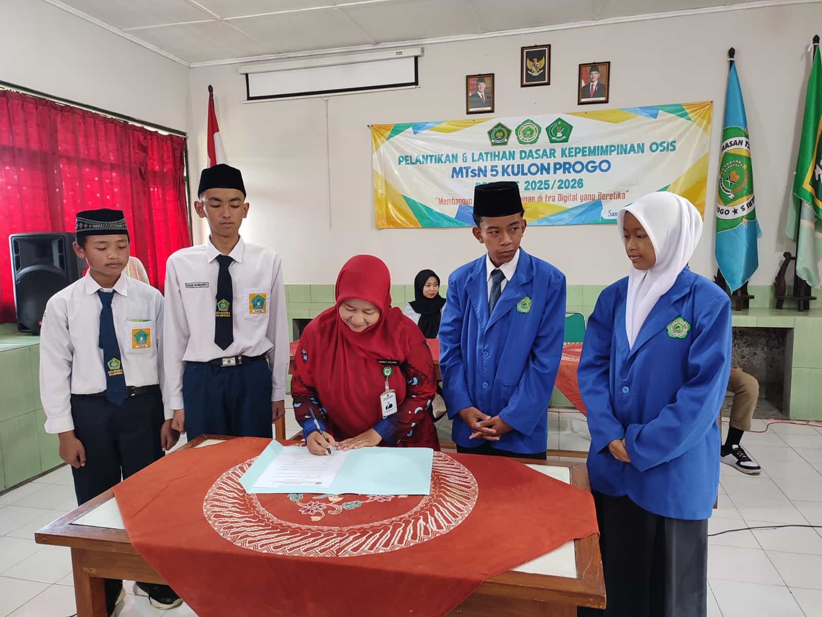 Kulon Progo (MTsN5KP) — MTs Negeri 5 Kulon Progo menggelar kegiatan serah terima jabatan pengurus OSIS periode 2024/2025 kepada pengurus baru periode 2025/2026 pada Jumat, 7 November 2025. Acara berlangsung khidmat di Laboratorium IPA MTsN 5 Kulon Progo dan dihadiri oleh seluruh pengurus OSIS lama dan baru, serta beberapa guru pendamping.