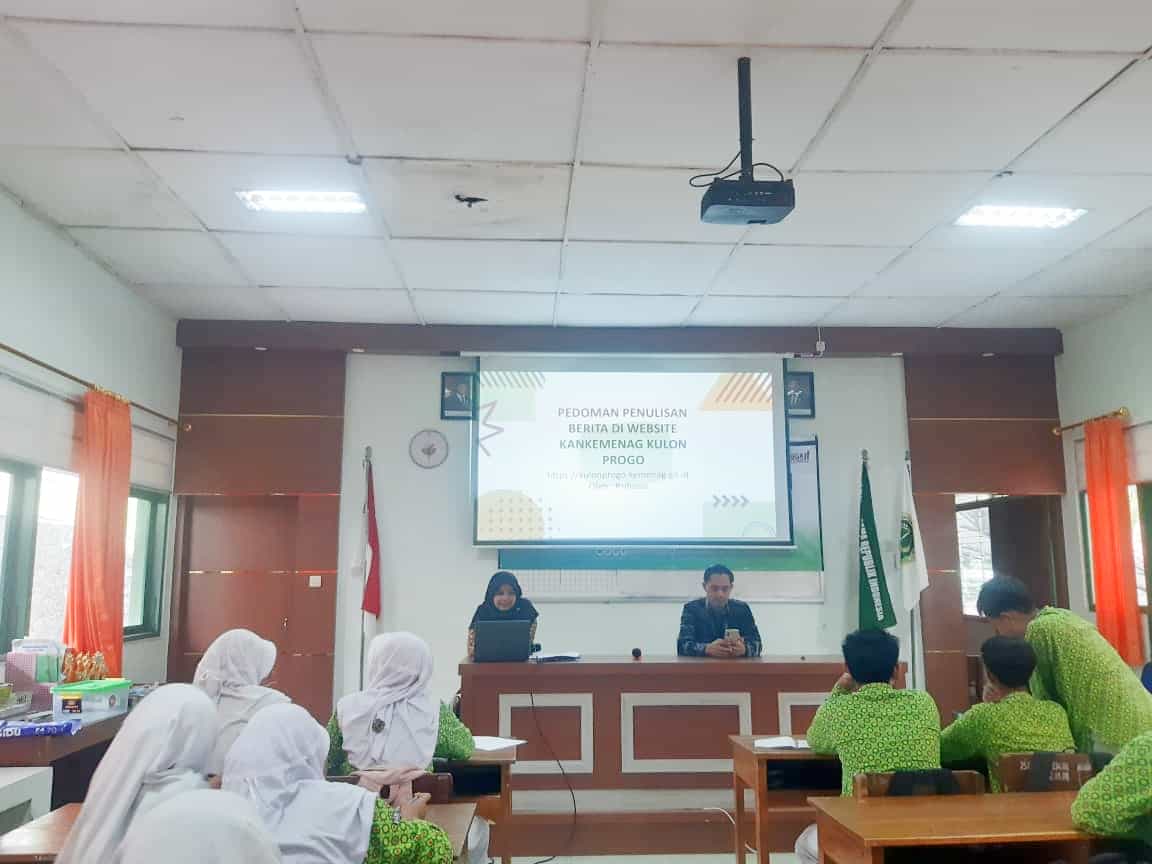 Kulon Progo (MTsN3KP) – Dalam rangka kegiatan Latihan Dasar Kepemimpinan (LDK) OSIM, MTsN 3 Kulon Progo mengadakan pelatihan jurnalistik pada Rabu (5/11/2025). Kegiatan ini menghadirkan narasumber, Jurnalis Kankemenag Kulon Progo, Prihono yang menyampaikan materi bertema Pedoman Penulisan Berita.