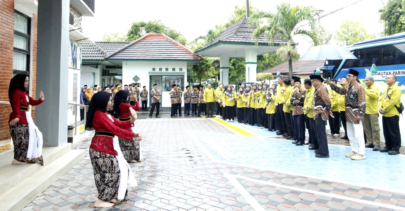 Tiga Penari MAN 2 Kulon Progo Sambut Tim Studi Tiru PZI Kankemenag Purbalingga