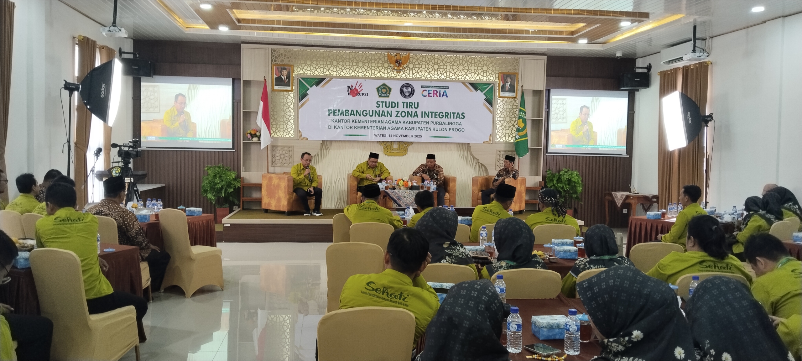 Kulon Progo (MAN2KP) – Tiga siswa MAN 2 Kulon Progo tampil dalam penyambutan Tim Studi Tiru Pembangunan Zona Integritas (PZI) dari Kantor Kementerian Agama Kabupaten Purbalingga yang berkunjung ke Kantor Kemenag Kulon Progo pada Jumat, (14/11/2025).