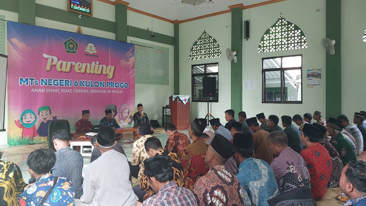 Kepala MTsN 6 Kulon Progo, Muhammad Muslich Purwanto, S.Ag., dalam sambutannya menegaskan bahwa capaian akademik di dalam raport hanyalah sebagian kecil dari potret pendidikan siswa. Ia meyakini bahwa pondasi utama keberhasilan anak terletak pada kualitas pola asuh dan dukungan spiritual di rumah. “Pendidikan tidak bisa hanya bertumpu pada guru di kelas. Melalui pengajian parenting ini, kami ingin membekali orang tua agar selaras dengan visi madrasah. Kita ingin anak-anak tidak hanya cerdas secara akademik, tapi juga memiliki akhlakul karimah,” jelas Muslich.