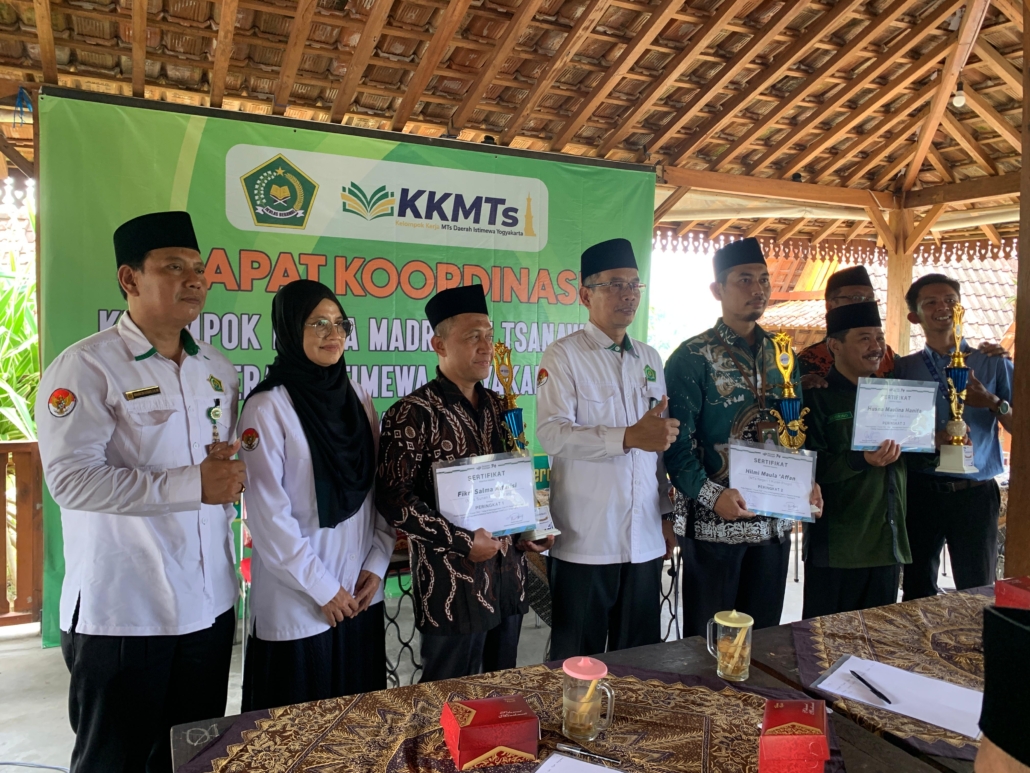 Kulon Progo (MTsN1KP) – Prestasi membanggakan kembali ditorehkan oleh siswa MTs Negeri 1 Kulon Progo, Hilmi Maula ‘Affan. Pada Try Out Tes Kompetensi Akademik (TKA) MTs se-DIY yang diselenggarakan oleh Penerbit Erlangga Yogyakarta, Hilmi berhasil menjadi terbaik kedua. Atas prestasinya, ia berhak mendapatkan sertifikat, piala, serta sejumlah uang pembinaan dari Erlangga. Penghargaan diserahkan oleh Kabid Dikmad Kanwil Kemenag DIY, H. Sidik Pramono, S.Ag., M.Si., kepada Kepala MTsN 1 Kulon Progo pada acara Rakor KKM MTs DIY di RM Iwak Kalen Nanggulan pada Senin (26/1/2026).
