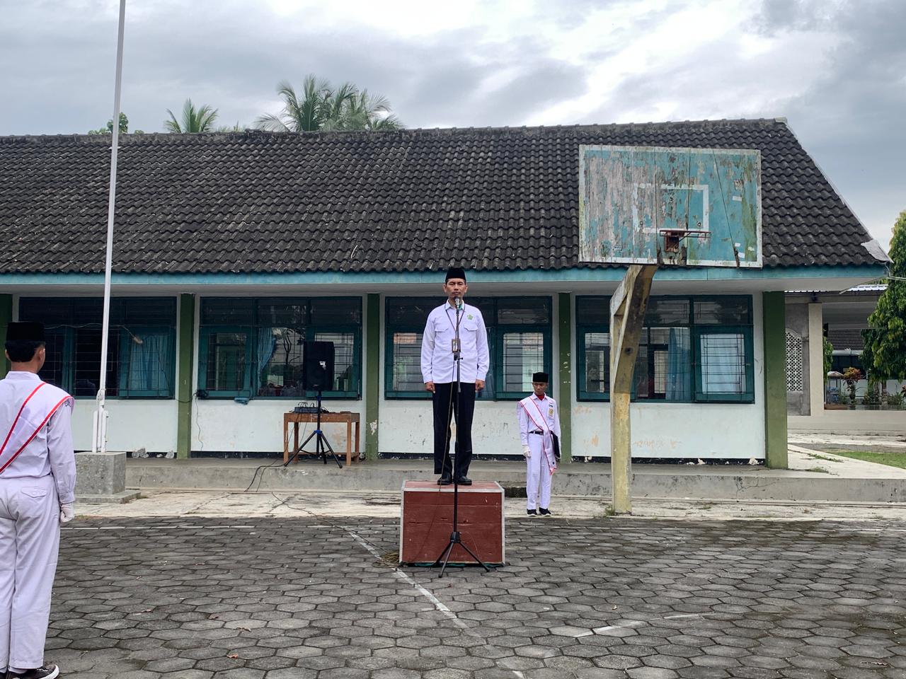 Kepala Madrasah, Munji Jakfar S.Pd.I., M.P.d.I. menjadi pembina upacara dan membacakan amanat Menteri Agama RI. “Hari ini kita memperingati Hari Amal Bakti ke-80 Kementerian Agama dengan mengusung tema Umat Rukun dan Sinergi, Indonesia Damai dan Maju. Tema ini menegaskan bahwa kerukunan bukan sekadar ketiadaan konflik, melainkan sebuah energi kebangsaan. Republik ini tidak dibangun oleh satu golongan, melainkan oleh sinergi seluruh komponen bangsa sejak masa perjuangan kemerdekaan hingga hari ini,” ujar Kamad.