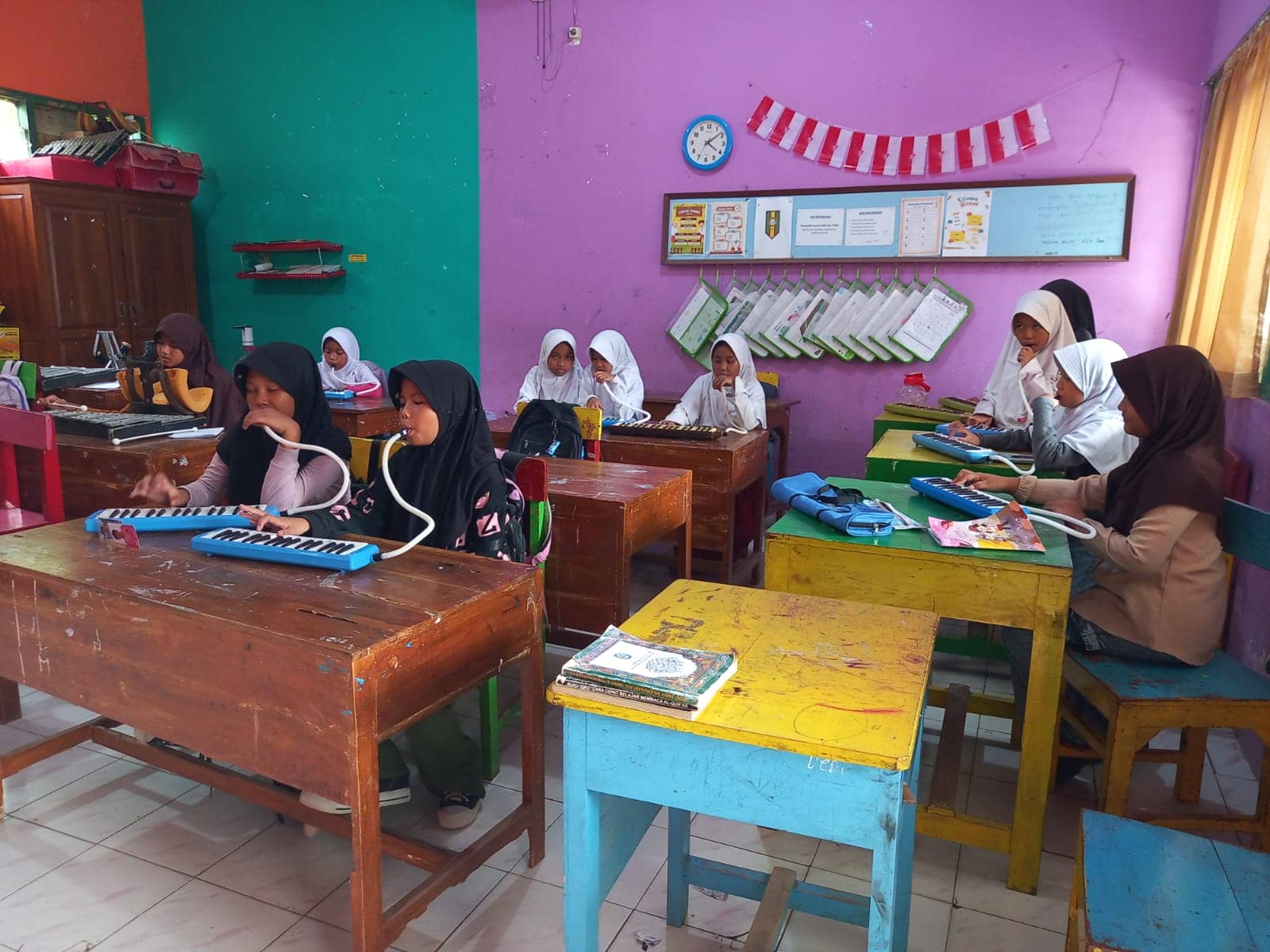 Salah satu murid Musera, Nur Aisyah ikut aktif latihan drumband merasa senang dan bersemangat. ”Senangnya bisa bermain drumband lagi. Saya bermain pianika. Senang bermain dengan not-not lagu yang unik,” kata Aisyah.