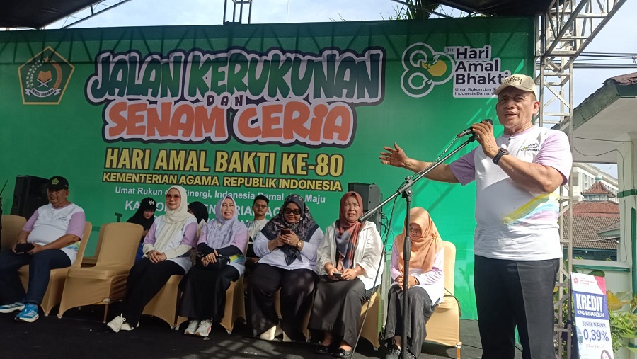 “Selamat mengikuti jalan sehat dengan bergembira dalam rangka HAB ke-80 Kementerian Agama. Insya Allah semakin efektif mengawal kehidupan beragama. Yang terpenting mengawal kerukunan, mengawal kekompakan. Karena kita akan bisa membangun Indonesia lebih cepat untuk maju sejahtera dan bermartabat,” harapnya.