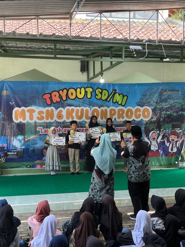 Kulon Progo (MTsN6KP) – MTsN 6 Kulon Progo sukses menggelar tryout tka SD/Mi. Setelah pelaksanaan kegiatan tryout, pembagian doorprize, dan panggung hiburan oleh pengurus OSIS. Kemudian kegiatan dilanjutkan dengan pembagian hadiah dan penghargaan untuk 5 juara teratas. Pembagian hadiah ini dilaksanakan di halaman masjid MTsN 6 Kulon Progo, Sabtu (14/2/2026) siang.