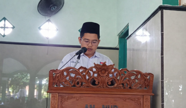 Kulon Progo (MAN 2 KP) – Muhammad Sabda Langit, siswa kelas X MAN 2 Kulon Progo mengisi pengajian dalam kegiatan Senin Karakter yang dilaksanakan di Masjid An-Nur Kampus Pusat, Senin, (23/2/2026). Kegiatan ini digelar seusai seluruh siswa melaksanakan Shalat Dhuha berjamaah.