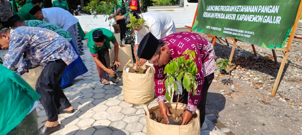 Kulon Progo (KUA Galur )-Kantor Urusan Agama Kapanewon Galur melalui Kepala KUA H. Afwan Zuhdi, S.Ag., M.A., berpartisipasi dalam kegiatan penanaman pohon dalam rangka memperkuat ketahanan pangan yang diinisiasi oleh GP Ansor Karangsewu, Kapanewon Galur.