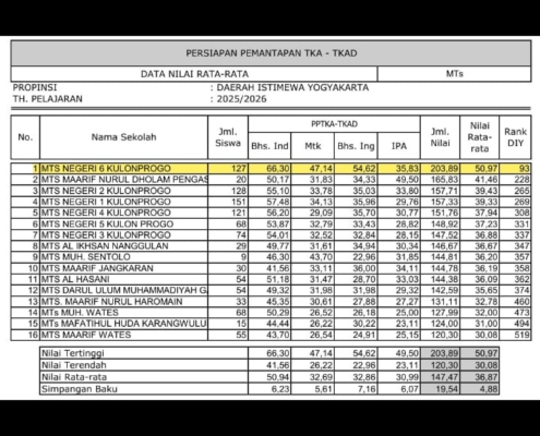 MTsN 6 Kulon Progo Rangking 1 Kabupaten pada PPTKAD Provinsi
